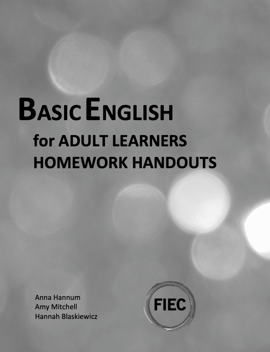These written homework worksheets to accompany Basic English for Adult Learners can be used as supplementation to the primarily oral work done in the classroom. Whenever possible, they are black and white to reduce copy costs. Pages can be photocopied for students.